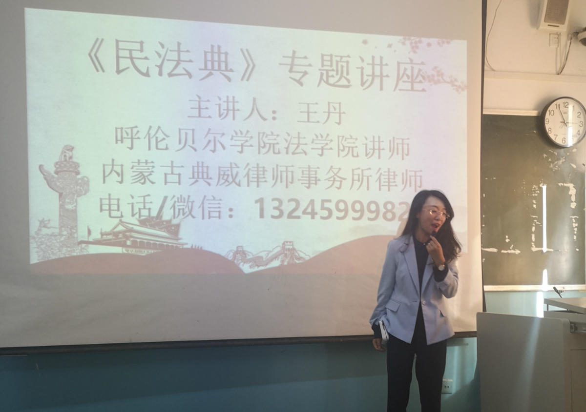 讲座中,王丹老师介绍了《民法典》的主要内容、实施意义和影响,并通过总结归纳和与师生互动的方式为大家讲解了《民法典》中“物权法”“合同法”“人格法”等七编中的亮点,用大量生动且真实的案例阐述了与我们生活密切相关的法律知识,引导师生强化学法、懂法、守法意识,提倡运用法律武器维护自身的合法权益。