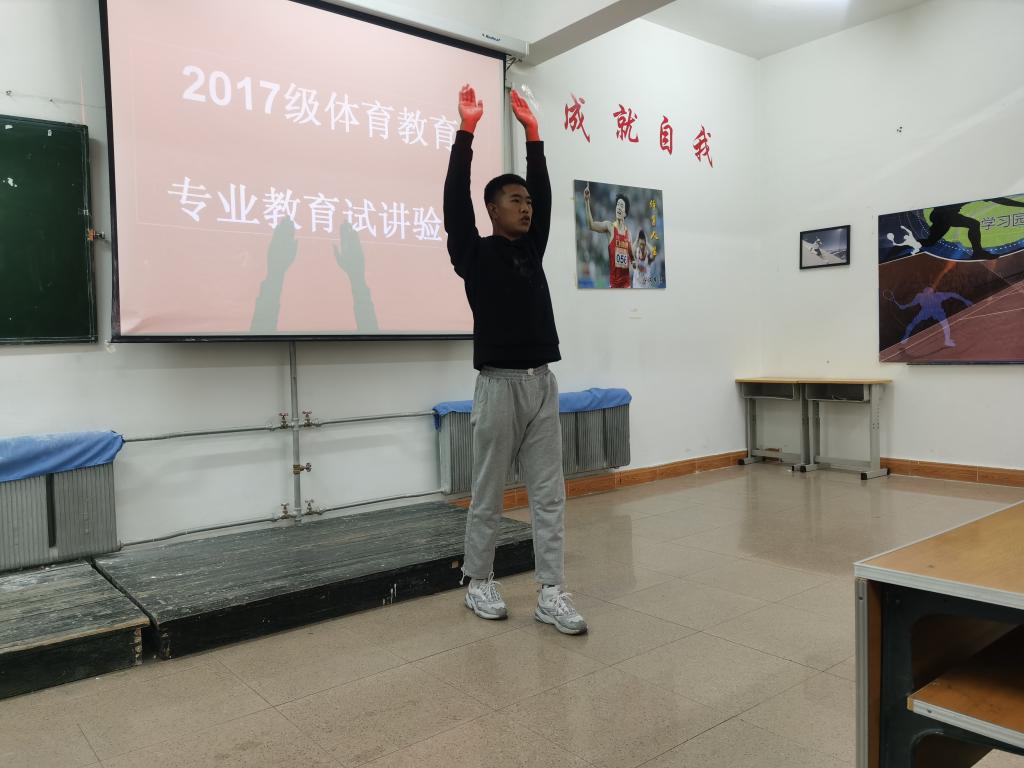 为检验大学生综合素质和教学能力,强化大学生课堂教学技能水平,提升学生的就业能力,体育学院体育教育系于9月23至10月4日,开展了2017级体育教育专业毕业生试讲验收专项工作,2017级体育教育汉本班和体育教育蒙本班全体学生参加了此次验收。在体育教育系主任周庆柱和副主任姜莹两位老师的协同下,同学们严格按照中学体育教学中对体育教师的要求标准讲授教学。