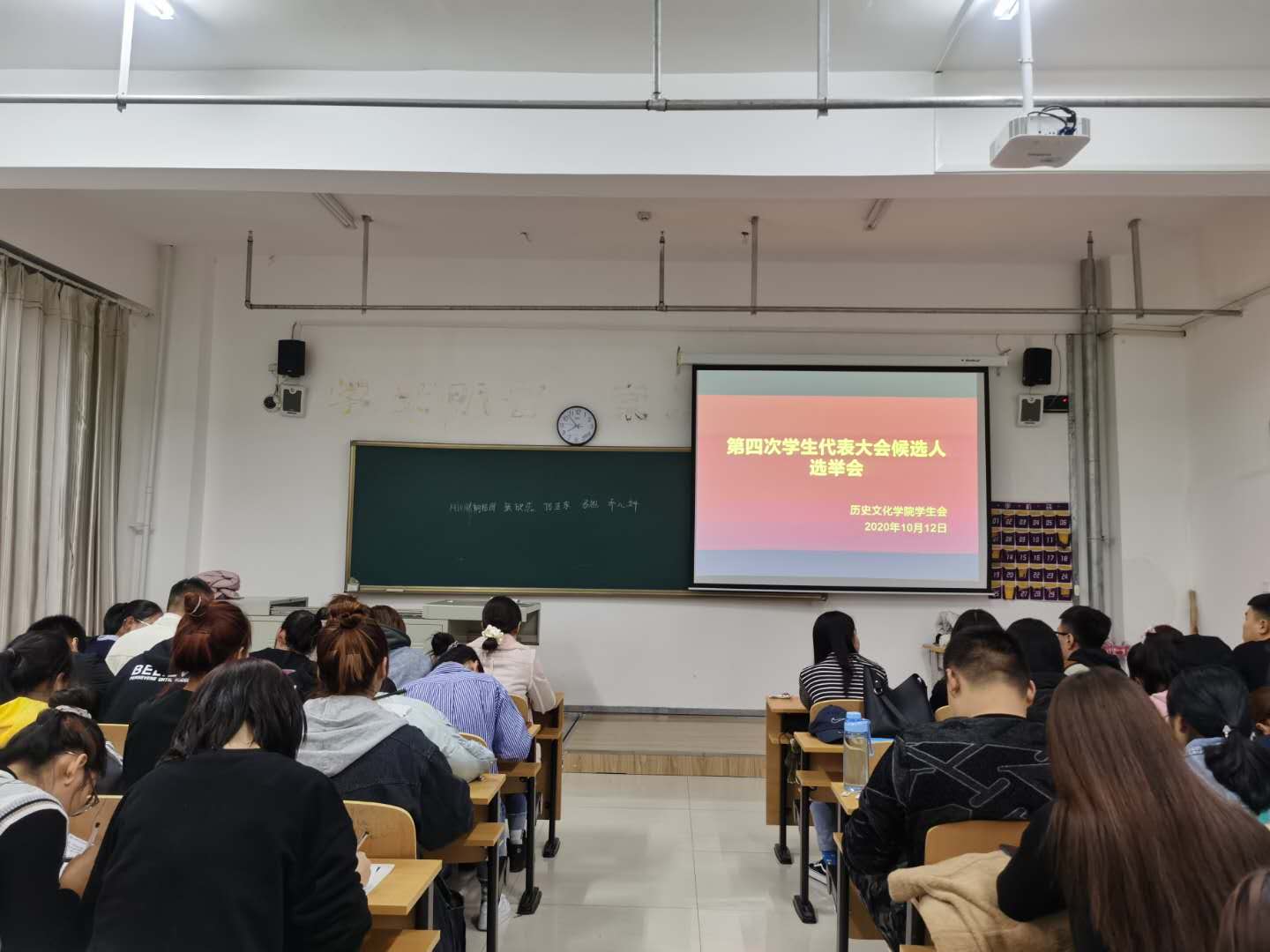 10月12日晚,历史文化学院召开艾佛森贝博ballbet官网第四次学生代表大会、共青团艾佛森贝博ballbet官网第四次代表大会代表选举会。参加本次会议的有学院团总支书记白苏雅拉图,学生会执行主席庞晓伟以及学生会、各班级代表。