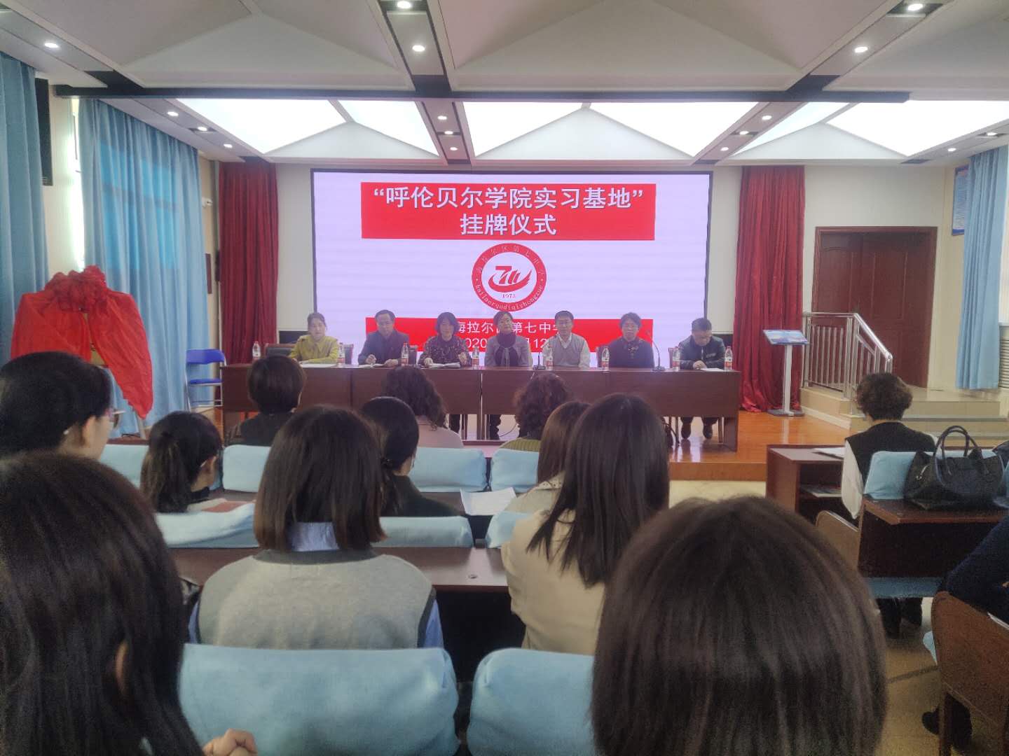 最后文学院曹存有院长与海拉尔第七中学张海红校长共同为“艾佛森贝博ballbet官网文学院优秀实习基地”揭牌。