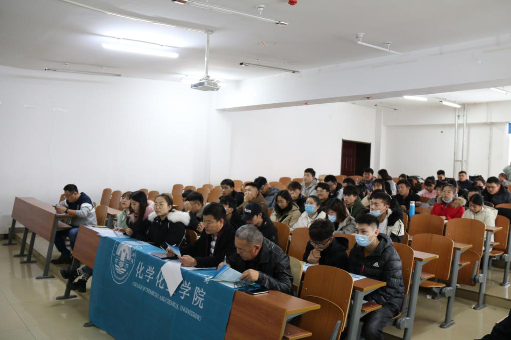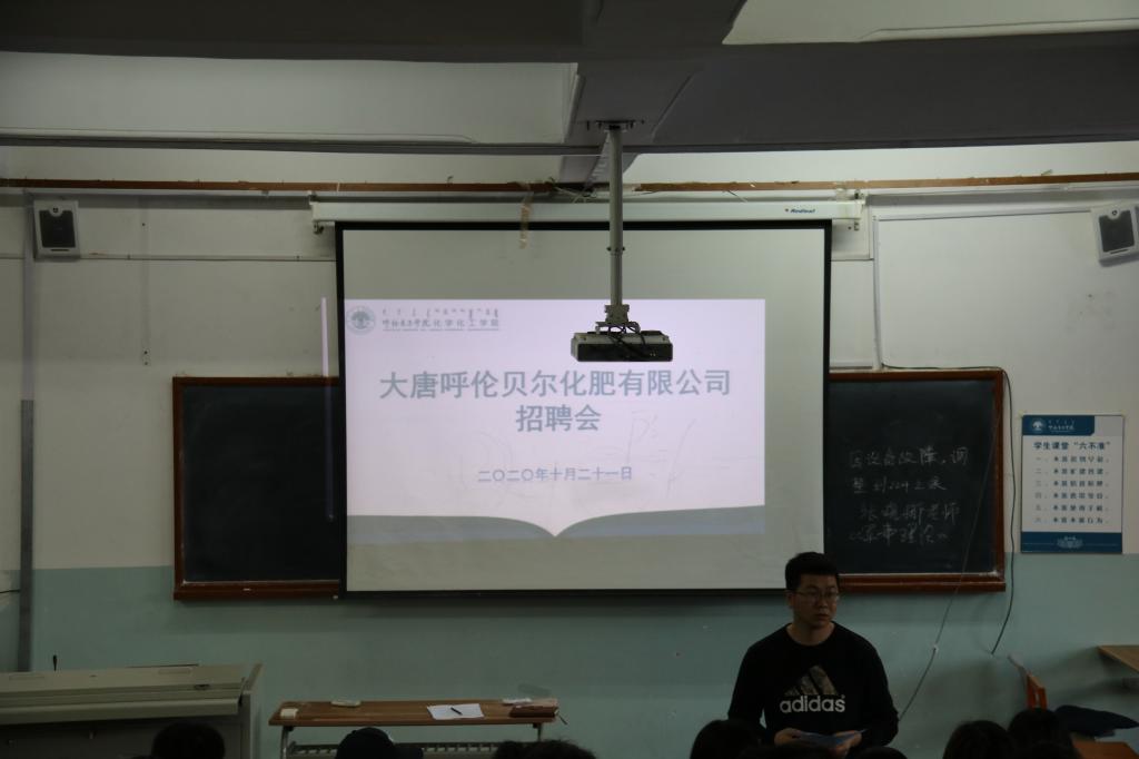 21日下午16:00,化学化工学院联合中国大唐集团有限公司在工程楼100教室举办了校园招聘会。大唐呼伦贝尔化肥有限公司副总经济师兼人力资源部主任李新天、人力资源部主管孙海博代表大唐集团化工板块所属分公司开展了专场招聘。化学化工学院党总支书记何平、院长白晓艳、党总支副书记刘朋、团总支书记孟庆永及50余名毕业生参加。大唐呼伦贝尔化肥有限公司人力资源部主管孙海博向大家介绍了公司的基本发展情况,待遇及薪酬情况,并通过宣传片进行了更为直观,详细的展示,对同学们提出的疑问进行了现场解答。同时,介绍了大唐内蒙古多伦煤化工有限责任公司、内蒙古大唐国际克什克腾煤制天然气有限责任公司的2021届毕业生招聘情况。