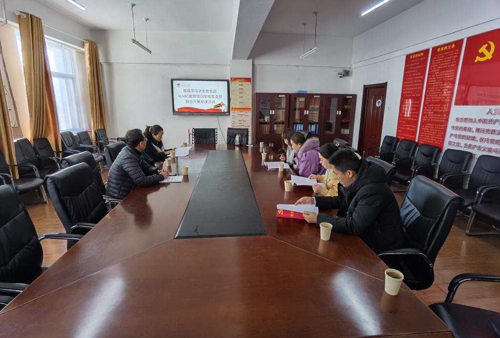 座谈后,教育学院学生党支部与海拉尔区ABC教育培训学校党支部联合开展了讲党课活动。
