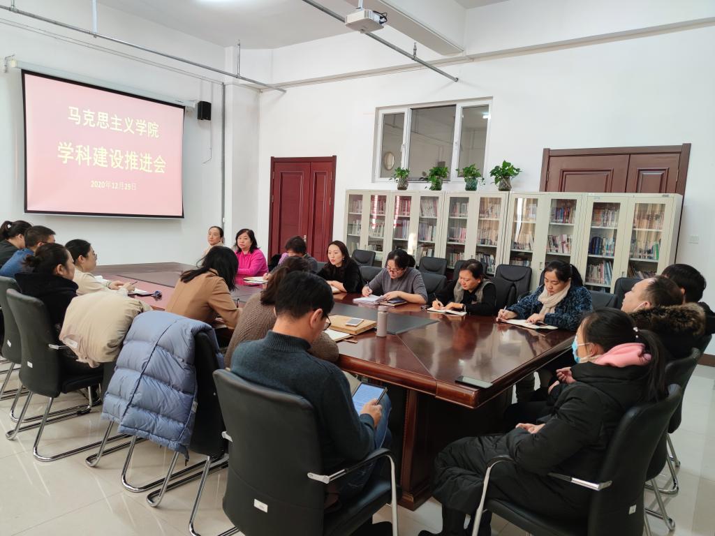 为推进我院学科建设工作,12月29日,马克思主义学院在崇文楼B座123会议室召开学科建设推进会。马克思主义学院领导班子、各科室主要负责人和培育的学科团队成员参加了本次会议。会议由马克思主义学院院长李俏主持。