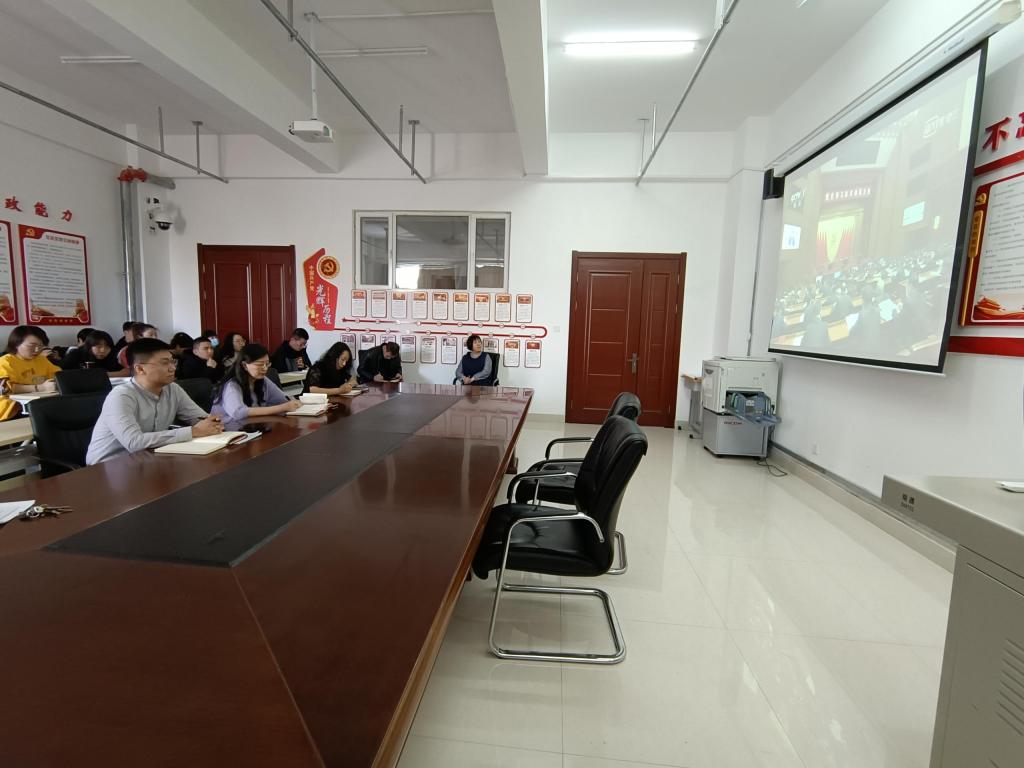 最后,全体教职工共同观看了“习近平在党史学习教育动员会上的讲话”视频。