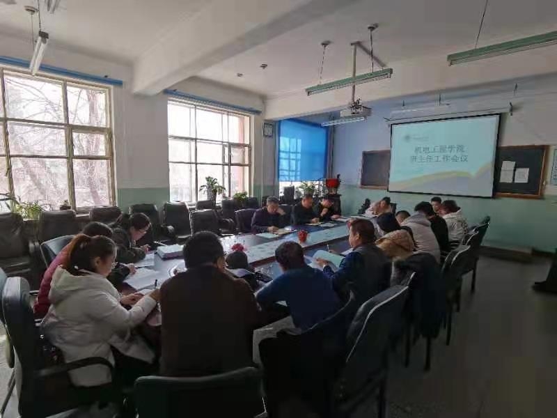 3月19日,机电工程学院在知行楼212会议室召开新学期辅导员班主任工作会议。党总支书记王旭、副书记汪鑫以及团学办公室全体辅导员、各班级班主任参加会议。会议由王旭书记主持。