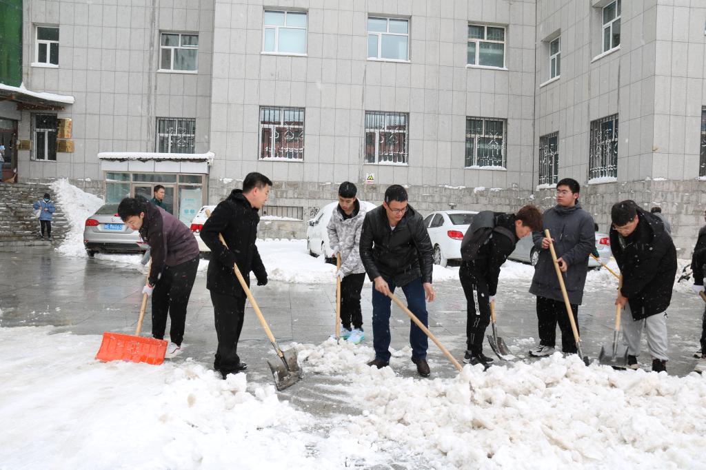 大家齐心协力,分工合作,配合默契,除雪行动,成效显著,为广大师生清理了一条方便之路。虽然天气较冷,积雪较厚,但这一点也没有影响师生们的热情和工作效率。