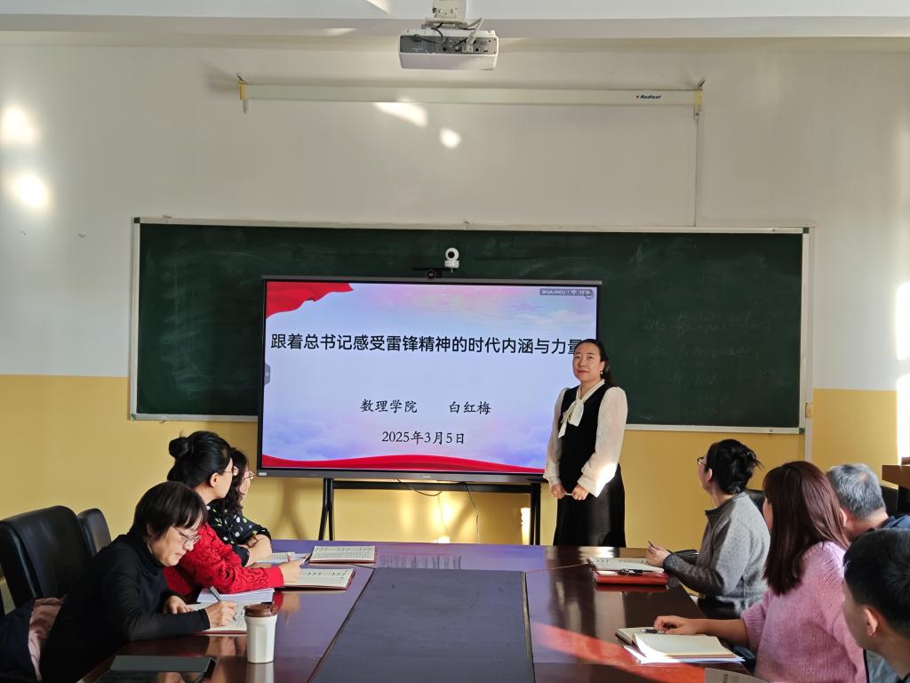 3月5日是第62个学习雷锋纪念日。为进一步增强党员的责任意识和服务意识,当天,数理学院教工党支部在笃学楼411会议室开展学习雷锋精神党课学习。教工党支部书记白红梅作题为《跟着总书记感受雷锋精神的时代内涵与力量》的报告,全体教师党员参加学习。