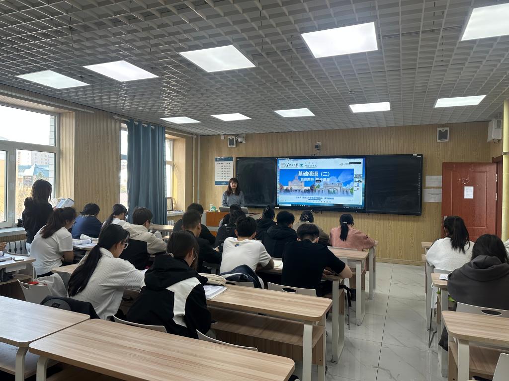 本次课堂由黑龙江大学俄语学院院长黄东晶教授主讲。贝博教务处副处长王继钢,外国语学院院长吕佩臣、副院长齐颖、教师董海涛及23名学生通过线上方式全程观摩学习。课堂上,黄东晶教授以生动的语言和丰富的教学经验,深入浅出地讲解课程内容,为两校学生带来了一场精彩的俄语学习盛宴。在互动环节,贝博学生踊跃发言,积极参与,课堂氛围热烈而活跃。
