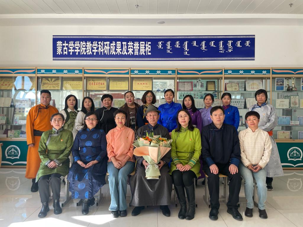 仪式上,学院院长白秀峰对斯仁巴图教授的教育教学生涯进行了回顾与总结,高度赞扬了他在职业生涯中的坚守与付出,感谢他为学院留下的宝贵精神财富。斯仁巴图教授在教育一线辛勤耕耘多年,他以渊博的知识、高尚的师德和无私的奉献精神,为学校和蒙古学学院的发展作出了卓越贡献。随后,青年教师代表为斯仁巴图献上鲜花,表达对老教授的敬爱与感激之情。斯仁巴图发表了荣休感言。他回顾了自己在学校的点点滴滴,对学院和同事们表达了深深的不舍与祝福,同时鼓励年轻教师们要不忘初心,牢记教育使命,为培养德智体美劳全面发展的社会主义建设者和接班人贡献力量。学院党总支书记格根塔娜在活动总结中表示,斯仁巴图教授将自己的青春奉献给了学校教育事业,为学院的发展进步贡献了力量,希望他退而不休,积极建言献策,一如既往地关心和支持学院各项事业发展。叮嘱年轻教师们能够继承和发扬老教师的优良传统,以饱满的热情和高度的责任感,投入到工作中,为学院的发展注入新的活力。