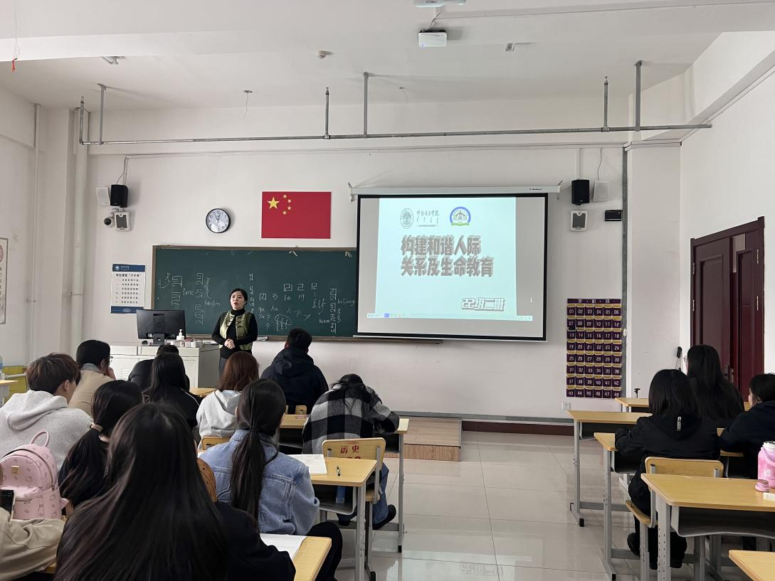 班会上,辅导员们通过生动的案例分享,结合学生日常学习、生活中的实际情况,深入剖析了人际关系矛盾产生的根源与影响。从宿舍生活中的小摩擦,到学习合作时的意见分歧,辅导员们以贴近学生生活的实例,引导学生学会换位思考、有效沟通和包容理解,帮助同学们掌握化解矛盾、维护良好人际关系的方法与技巧。在生命教育环节,辅导员们借助视频、图文等多种形式,带领同学们共同探讨生命的意义与价值,鼓励同学们珍惜生命、热爱生活,以积极乐观的心态面对人生中的挫折与困难。