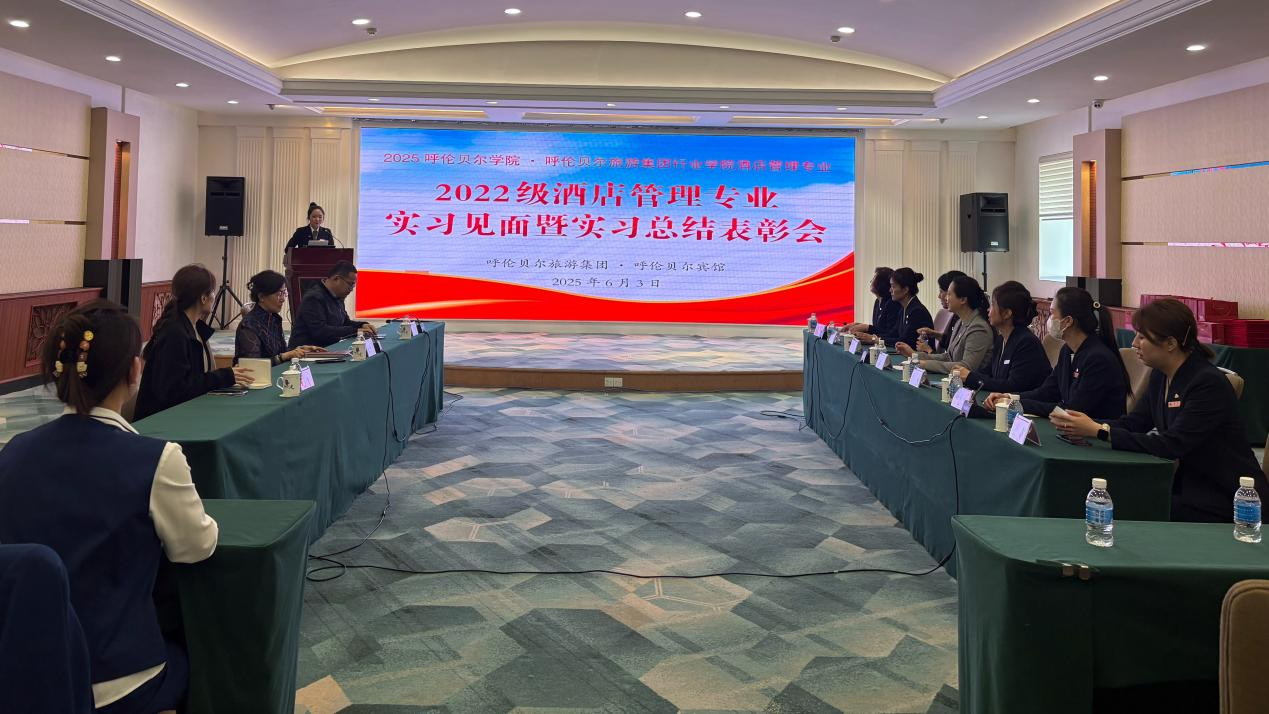 6月3日,艾佛森贝博ballbet官网·呼伦贝尔旅游集团酒店管理学院在呼伦贝尔宾馆举办2022级酒店管理专业实习见面暨实习总结表彰会。旅游地理与历史文化学院院长白絮飞、酒店管理系主任石磊、教师陈禹泽,呼伦贝尔旅游集团董事长兼总经理卢晓辉、行政总监赵永宏及企业中层管理者参加会议。