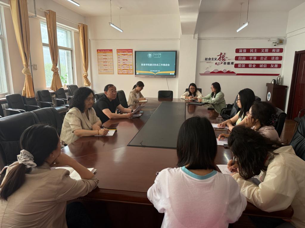 6月16日,教育学院于艺术楼210会议室组织召开意识形态工作推进会。学院领导班子成员、环节干部及各支部书记参会,会议由学院党总支书记海江主持。