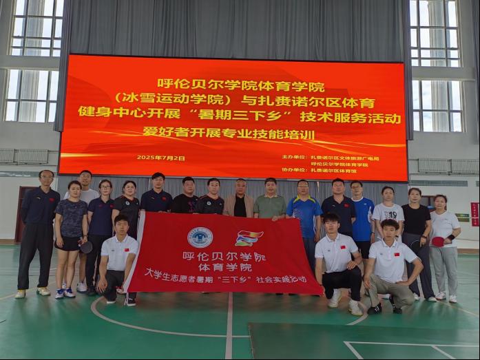 第二站,在扎赉诺尔区全民健身中心,团队成员化身“体育教练”,为乒乓球、羽毛球爱好者带来了专业的技能培训。卜祥云老师和邢末老师针对不同年龄层的爱好者的特点,从握拍到颠球,从发球到接招,进行手把手指导。羽毛球场地中,老师和同学们结合实战演练,通过对练帮助爱好者提升专业技能。此外,老师和同学们还特别分享了运动损伤预防与康复知识,引导大家科学健身,现场学习氛围十分浓厚。此次培训,不仅让同学们在实践中锻炼组织协调、独立思考和团队合作能力,同时带动更多人参与运动、热爱运动,并且为师生搭建了服务社会的实践平台,实现了教学与实践的有机结合。