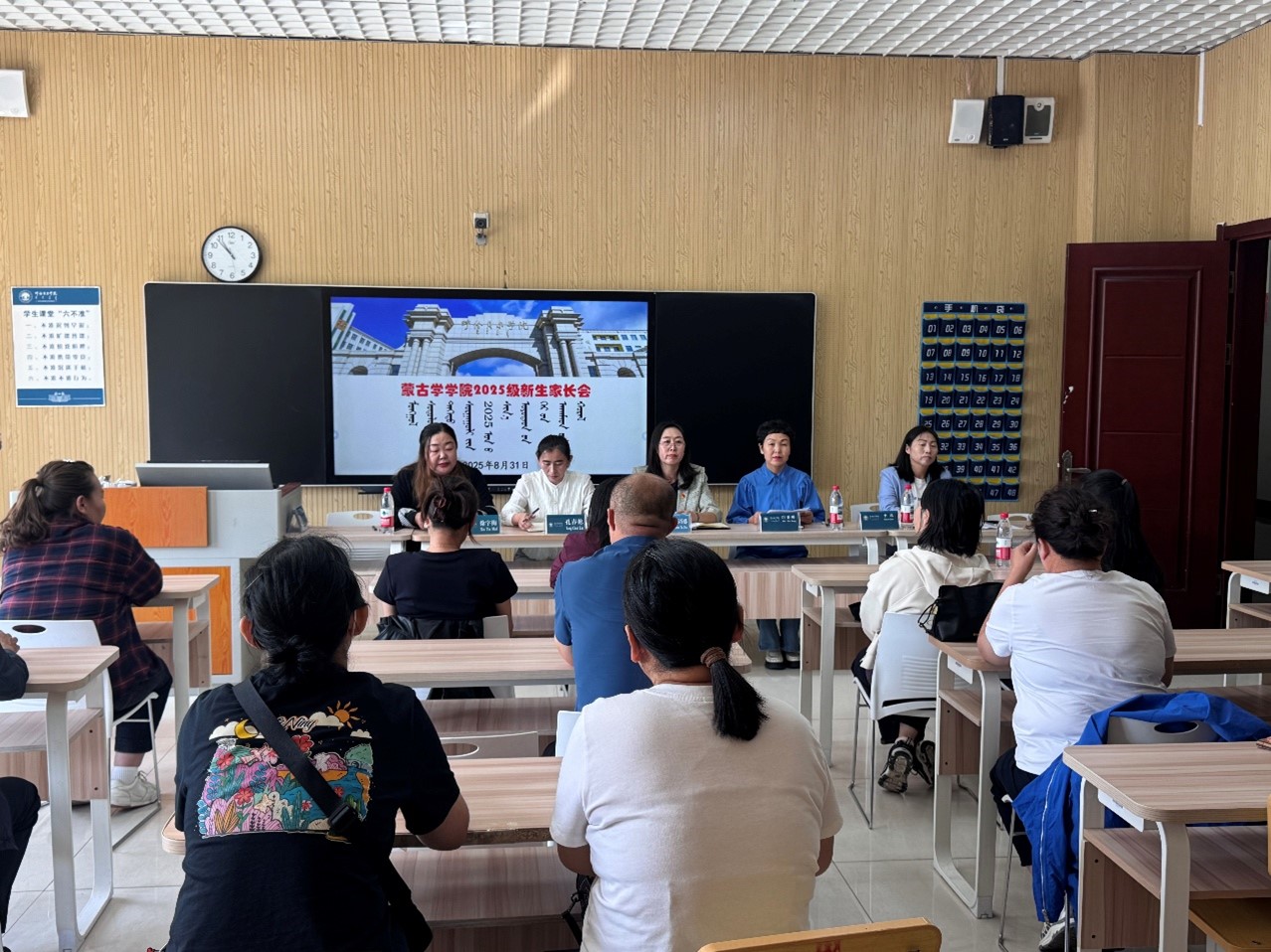 为加强家校联动、凝聚育人合力,帮助新生家长全面了解学院育人体系与学生成长规划,8月31日上午,蒙古学学院在崇文楼B228教室召开2025级新生家长会。学院党委书记格根塔娜、院长白秀峰、党委副书记孔春艳、副院长小花、新生学业导师及2025级60余名新生家长参加会议。会议由新生辅导员徐宇梅主持。