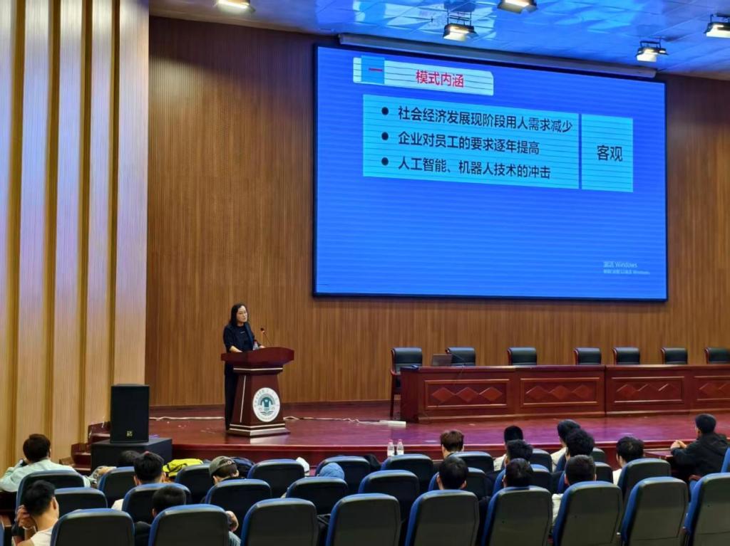 9月28日晚,工学院在图书馆四楼报告厅举办校企合作共建专业专题宣讲会。学院特别邀请浙江汉峘教育发展有限公司产业学院院长孙丽霞教授担任主讲人,学院党委副书记吴晗、电气工程教研室主任王巍、辅导员阿茹娜以及2025级电气工程及其自动化(专升本)专业267名学生到场参会。