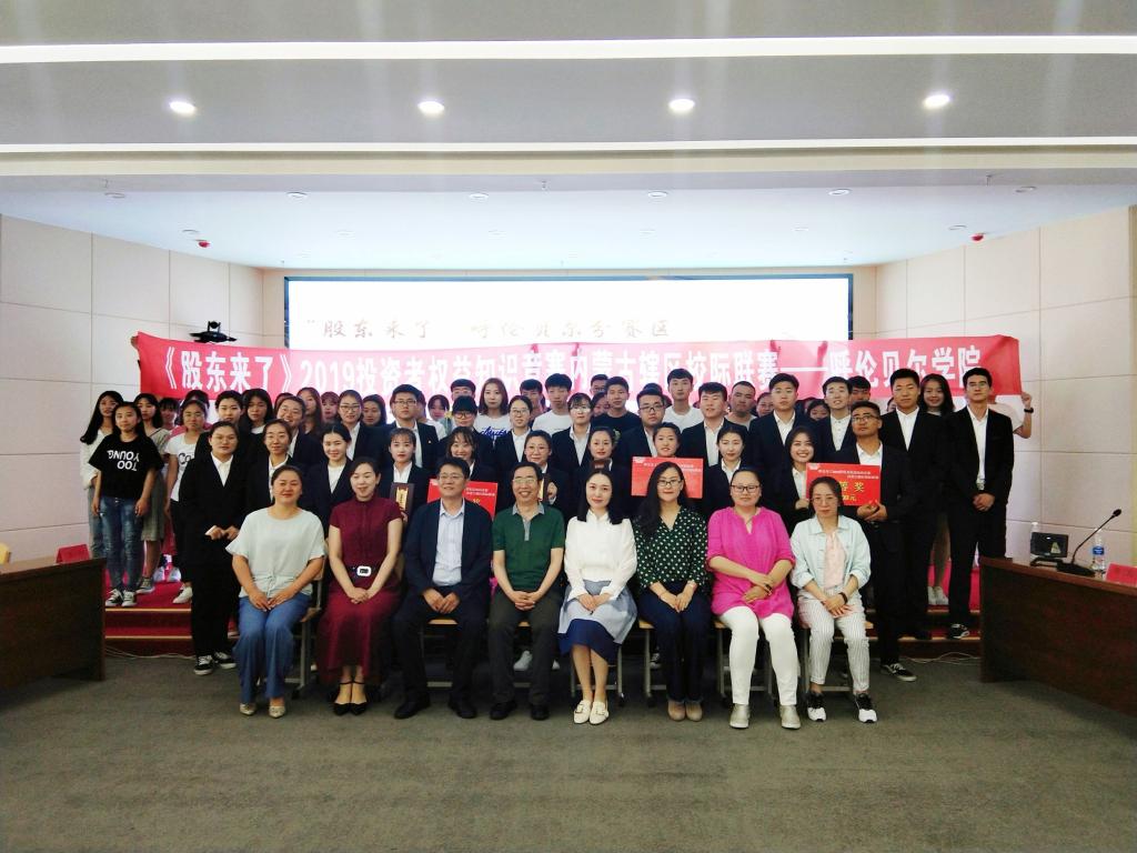 为更好地扩展投资者教育领域,构建金融人才培养新格局,填补学生知识结构空白,加强投资者知识教育,积极践行“完善投资者教育机制,推动投资者教育纳入国民教育体系”的号召,艾佛森贝博ballbet官网经济管理学院于6月16日下午在崇文楼A201开展“股东来了”呼伦贝尔分赛区,燃烧吧,Brain金融知识竞赛决赛。出席本次活动的嘉宾有恒泰证券投教部经理张颍星、恒泰证券呼伦贝尔区域副总经理于兆君、恒泰证券海拉尔营业部陈丽、经济管理学院党总支书记邱玉臣、国际经济与贸易系主任丰华、教科办主任王淑华以及杨波和马艳艳老师。
