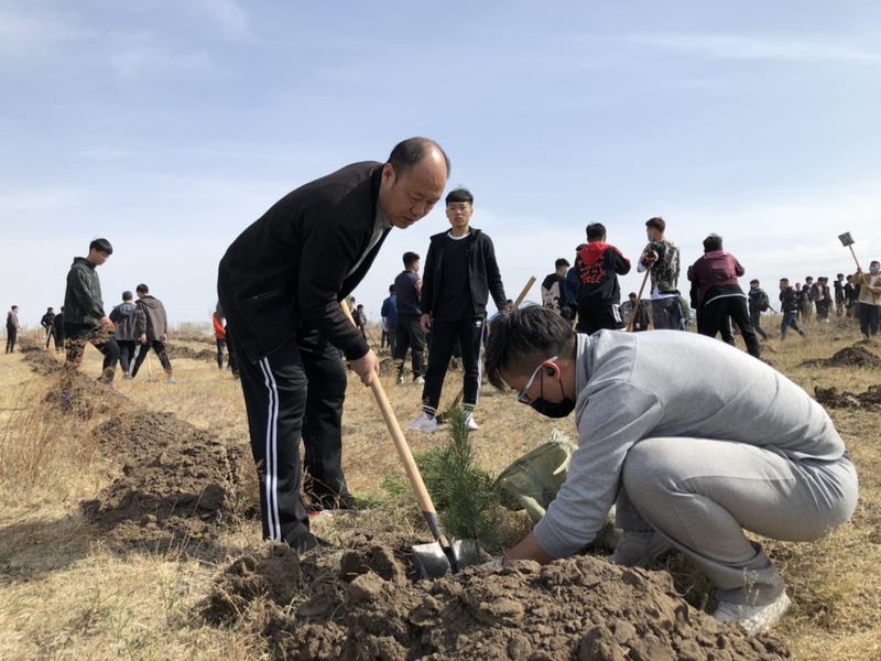 呼伦贝尔的五月,春回大地人间暖、绿染乾坤万物苏。5月12日,矿业学院在东山开展公益植树活动。矿业学院副书记张福友、王旭,团总支书记汪鑫、辅导员陈绪莲、李沁茹、包孟磊以及学生党支部、矿业学院青年志愿者协会、矿业学院团总支、学生会共计153人参与植树活动。早上7点30分,王旭副书记在12号公寓楼下为全体学生召开动员会。