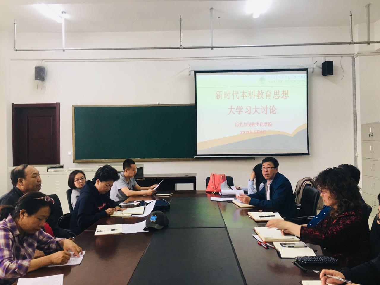 5月8日下午,历史与民族文化学院在会议室举行了“新时代本科教育思想学习大讨论”,本次大讨论活动是根据《艾佛森贝博ballbet官网关于开展新时代本科教育思想大学习大讨论实施方案》的要求而开展的系列活动之一。大讨论活动由我院党总支书记李雅杰同志主持,我院领导班子成员及全体教职员工参加了讨论。