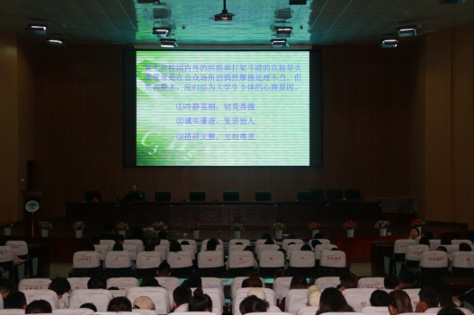 他结合我院学生实际,用通俗易懂的语言讲述了身边的真实案例,围绕国家安全、意识形态安全、网络安全、心理安全、交通安全、食品安全等十个方面进行了安全教育。此外,还讲了几个不被重视的安全隐患,如毒品、同性恋、邪教及艾滋病等问题。