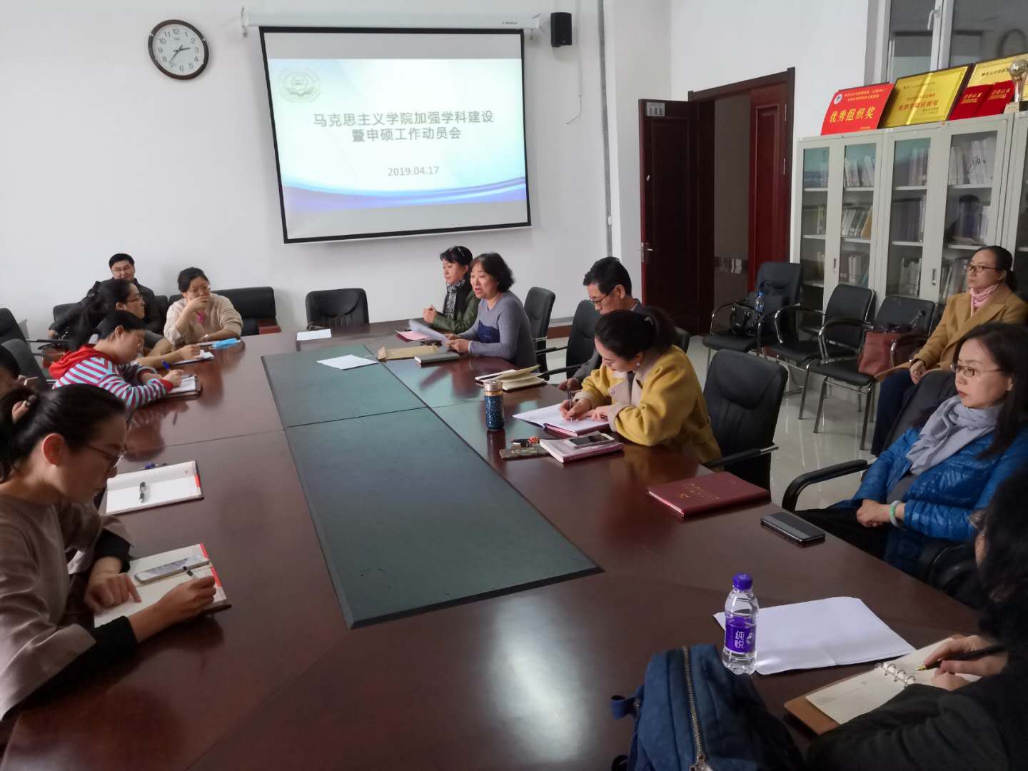 4月17日下午,马克思主义学院召开了加强学科建设暨申硕工作动员会,会议由马克思主义学院院长褚金芬主持,党总支书记马庆林、副院长李俏等参加会议。