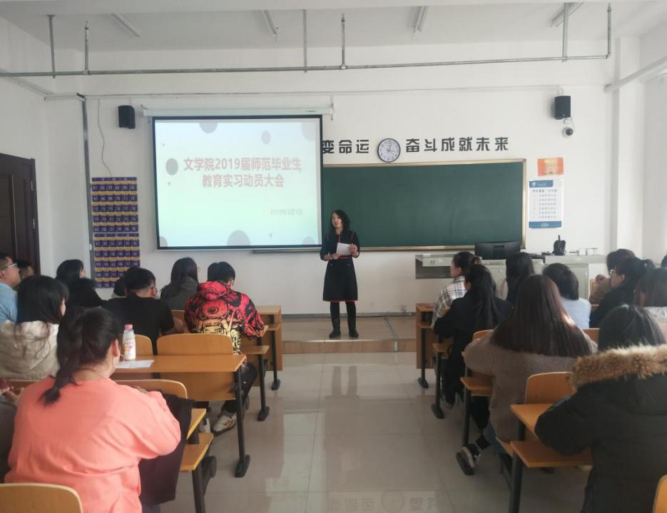 3月13日下午,文学院在崇文楼B座606室召开了2019届师范专业专科毕业生教育实习动员大会。实验实训中心主任林秀丽参加并主持了动员大会。