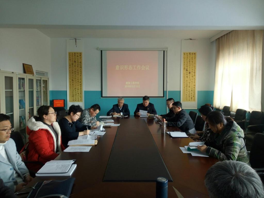 为深入贯彻自治区党委宣传部及校党委对意识形态工作的重大部署,进一步强化意识形态责任制的落实,加强师德师风建设,3月13日下午,建筑工程学院在笃学楼五楼会议室召开意识形态工作推进会,会议由党总支副书记张仁杰主持,全体教职工参加。