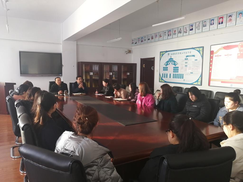 初等教育学院于3月6日下午,在艺术楼202室,举行了新疆支教座谈会。出席本次座谈会的有党总支书记阿拉坦巴根、院长吕佩臣、副院长张桂芝、教研办、团总支、辅导员老师以及2016级语文教育的部分参加新疆支教学生。