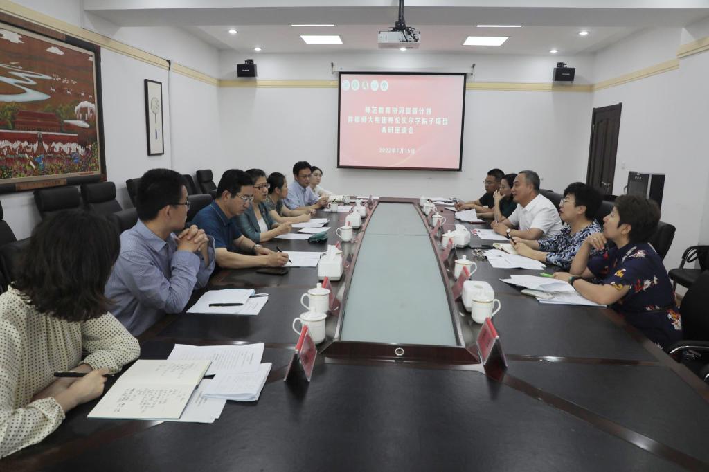 根据教育部办公厅《关于实施师范教育协同提质计划的通知》《师范教育协同提质计划工作实施办法》等文件精神,7月14日至16日,以首都师范大学党委常委、副校长李小娟为组长带领的首都师范大学、内蒙古师范大学、曲阜师范大学一行12人组成的考察组,赴贝博实地考察调研。