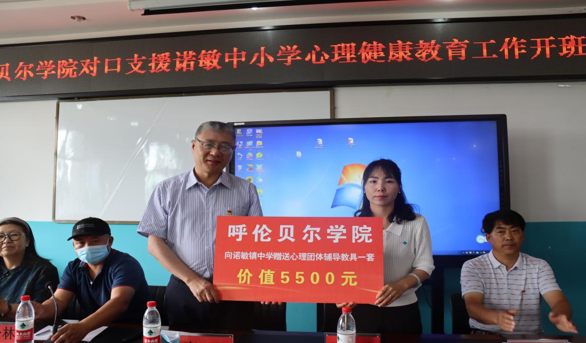在9日的开班仪式上,李健处⻓代表贝博向诺敏镇中学捐赠1套心理团体辅导教具。王晨老师和谢春辉老师分别为诺敏镇中小学心理健康专兼职教师、班主任开展了“如何引导中小学生科学应对压力”以及“和谐人际关系人类最优选择”的专题讲座。于泽老师带领全体参会教师开展了“沟通 信任 合作”为主题的素质拓展训练活动,冯旸老师就“如何培育优良团队”与各位老师进行分享交流。