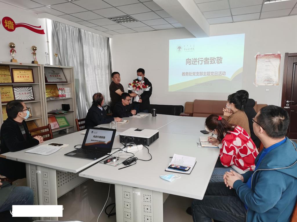 为致敬最美逆行者,秉承着“不忘初心、牢记使命”的理念,2月21日上午,教务处党支部开展了“向逆行者致敬”主题党日活动。教务处党支部书记尹立军主持活动。教务处全体职工参加了本次活动。