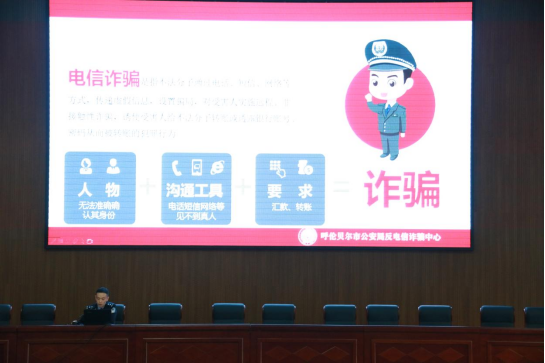 讲座现场,武斯清警官从什么是电信诈骗、学生群体易受骗的四种诈骗手法、“断卡”行动、“遭遇电信诈骗我们应该怎么做”并结合发生在校园的各种案例,以案说法,观看影视资料等形式进行了深入浅出地讲解。讲座结束后,校园安全管理处工作人员与呼伦贝尔市公安局刑侦支队警官共同为学生发放了反电诈宣传手册。