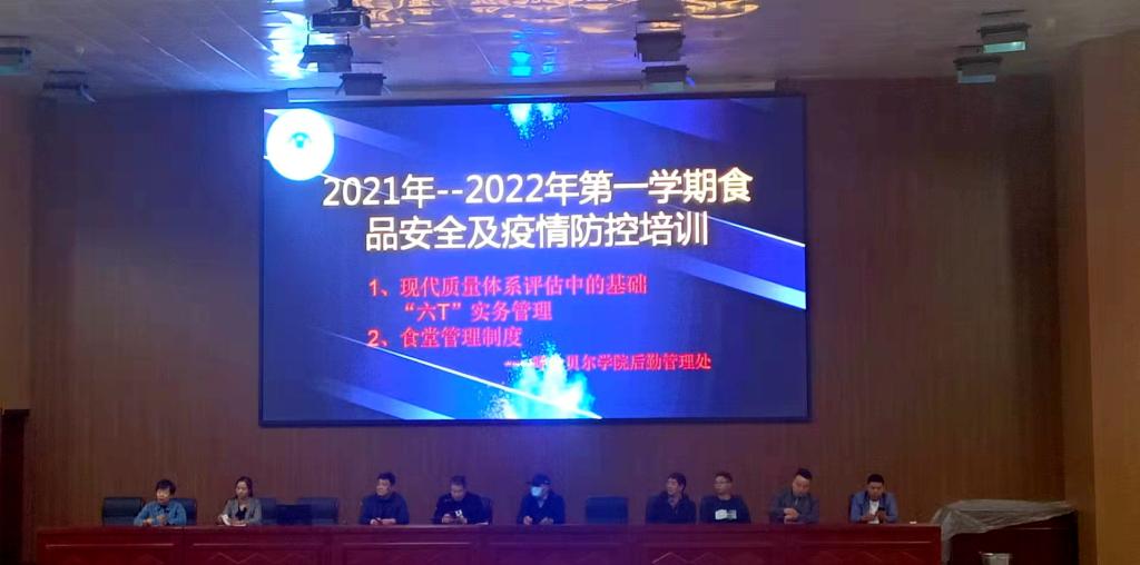 为贯彻落实内蒙古自治区及贝博2021年秋季开学安全工作的会议精神,切实加强学校食堂食品安全监管工作,维护师生的饮食安全,9月10日上午,后勤管理处饮食服务中心组织全体工作人员及三所食堂全体管理人员、从业人员350余人,在图书馆四楼报告厅召开了2021年—2022年第一学期食品安全及疫情防控培训会。