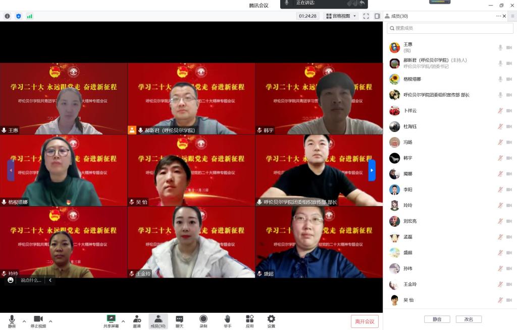 11月3日下午,校团委组织召开线上“艾佛森贝博ballbet官网共青团学习贯彻党的二十大精神专题会议”,会议由团委书记郝新君主持,全体教师团干部参加此次会议。