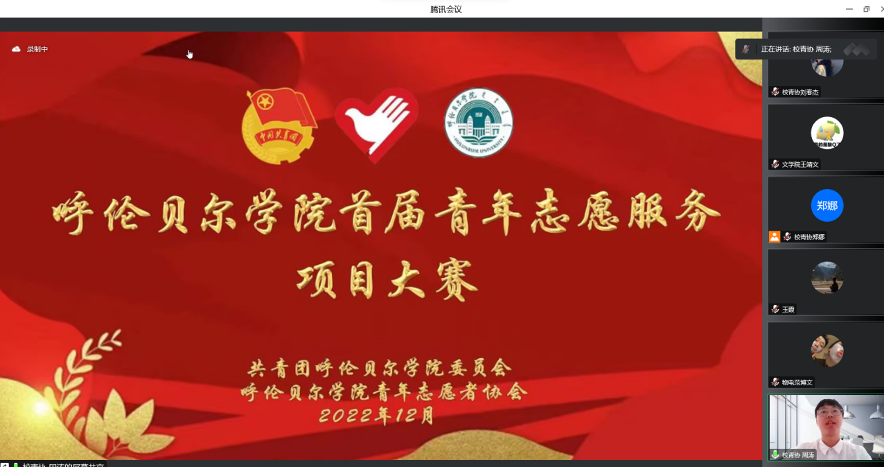 为深入学习贯彻习近平总书记关于志愿服务工作的重要指示精神,进一步打造项目展示、组织交流、文化引领和资源配置于一体的全校青年志愿服务综合平台,推动贝博青年志愿服务事业和志愿服务组织发展,12月21日上午,校团委在线上举办艾佛森贝博ballbet官网首届青年志愿服务项目大赛。校团委全体教师担任大赛评委,各学院学生代表在线进行了观看。