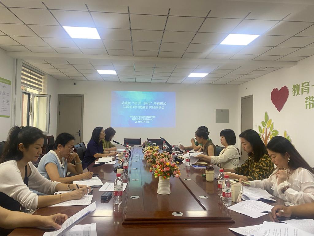 7月15日上午,继续教育学院和海拉尔区教育研修中心在海拉尔区教育研修中心会议室召开县域级“研训一体化”培训模式与“国培计划”项目的融合实践座谈会。继续教育学院院长莎茹莉及相关工作人员、海拉尔区教育研修中心领导班子和专家团队参加了会议,会议由海拉尔区教育研修中心主任宋学红主持。