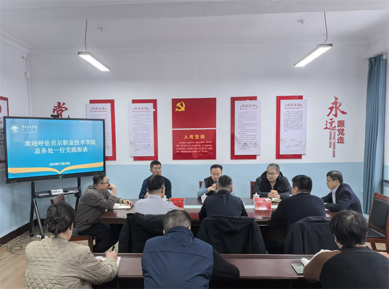 11月25日下午,呼伦贝尔职业技术学院总务处处长侯正林一行三人来贝博后勤管理处调研交流,后勤管理处领导班子全体成员及相关人员在外院楼216会议室召开座谈交流会议。