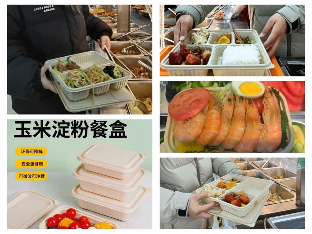 为响应国家生态文明、绿色健康校园建设号召,贝博后勤管理处饮食服务管理中心积极采取措施,组织餐饮企业推行绿色低碳环保餐盒的使用,从3月10日起,餐饮中心(内蒙古品维餐饮公司)率先开始全面使用一次性可降解玉米基环保食品级餐盒,此餐盒采用天然玉米淀粉及植物纤维为主要原料构成,具有耐高温、耐低温、加厚防漏、自然降解的特点,可微波加热可冷藏,更安全更健康。自本周推行使用以来,受到了师生一致好评。环保餐盒的使用预计每年可为校园减少11.35余吨不可降解塑料餐盒垃圾,避免了水体和环境污染。