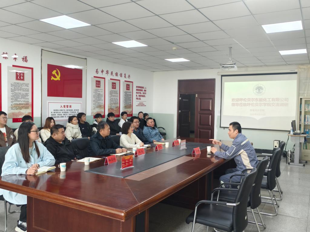 会上,杜志闯向东能化工有限公司一行表示热烈欢迎,并详细介绍了学校的基本情况、专业设置、人才培养及就业工作情况。呼伦贝尔东能化工有限公司人力行政部长李海臣详细介绍了企业的发展历程、产业布局及人才需求。随后,王旭介绍了工学院概况,重点介绍学生在智能制造、机械自动化方面的实践能力。张阳介绍了学院学科优势,同时,她提出深化校企合作的意愿,并建议推动实习就业一体化建设。