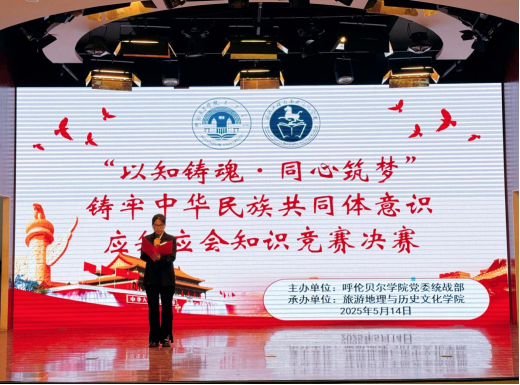 5月14日下午,由校党委统战部主办、旅游地理与历史文化学院承办的“以知铸魂·同心筑梦”铸牢中华民族共同体意识知识竞赛在崇文楼B座小剧场圆满落幕。来自16个学院的48名同学共同参赛。