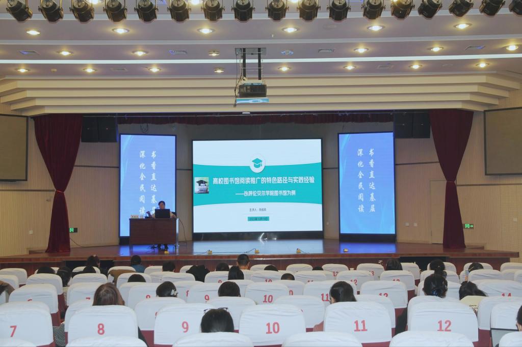 10月19日,在呼伦贝尔市图书馆、呼伦贝尔市图书馆学会联合举办的“深化全民阅读 书香直达基层”阅读推广实务培训班上,呼伦贝尔市图书馆学会理事、贝博图书馆信息技术部部长陈绪燕代表学校图书馆作了题为“高校图书馆阅读推广的特色路径与实践经验——以艾佛森贝博ballbet官网为例”的专题讲座,为来自全市各旗市图书馆及中小学的150余名参训人员分享了实践成果。