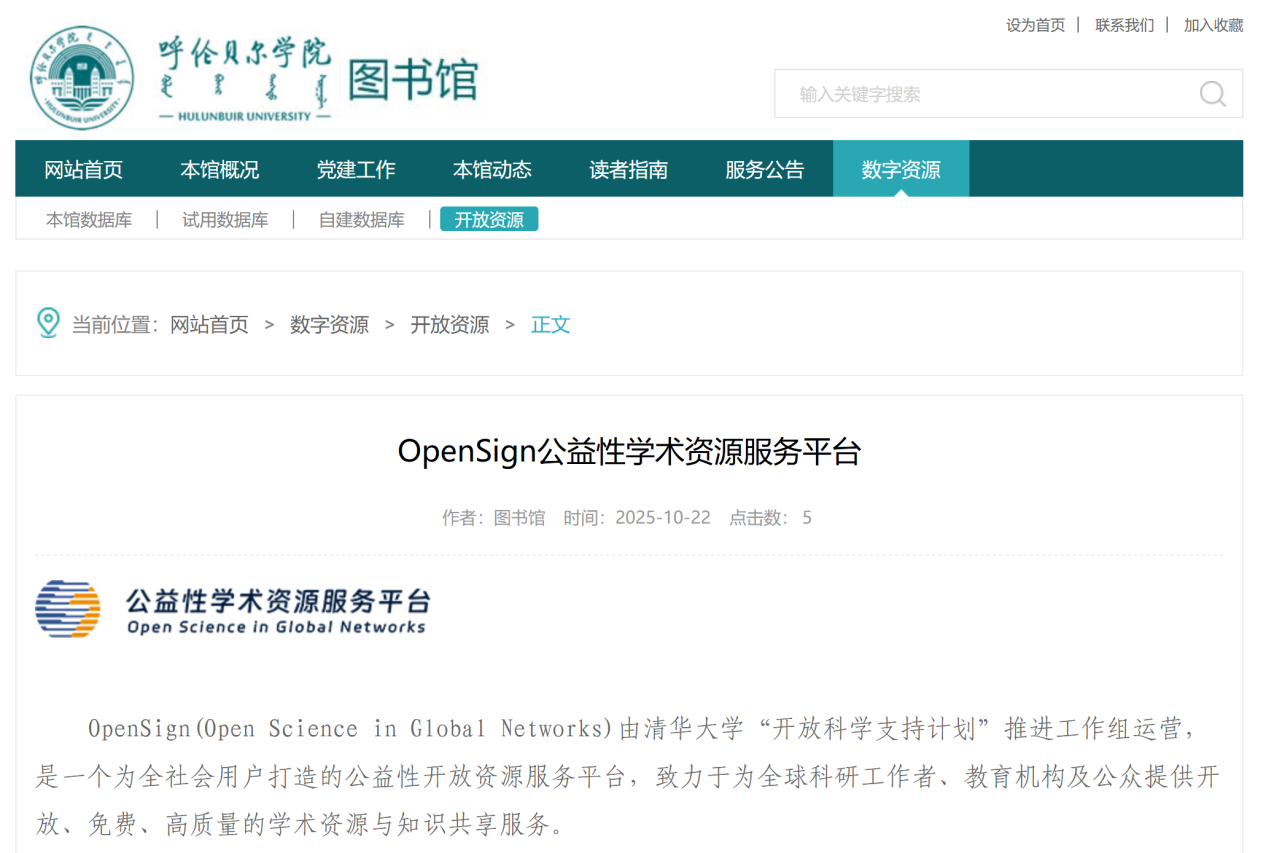 此次,OpenSign平台资源共享已经落地,11月4日,OpenSign平台链接正式挂接至学校图书馆官网,全校师生可通过图书馆网站便捷访问平台资源。后续,清华大学图书馆可OA开放的新增数据库在上线以后将陆续共享。