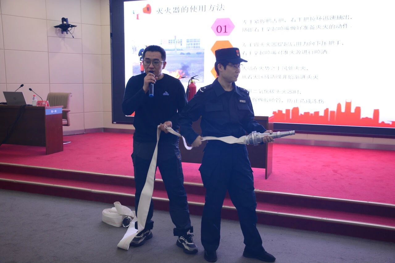 校园安全管理处领导、相关部门负责人,各二级学院团学办公室主任、各学院学生代表,包头国诚安保公司工作人员以及艾佛森贝博ballbet官网义警队全体成员共同参加了活动。活动特别邀请内蒙古恒海消防技术公司一级注册消防工程师郭志强担任主讲嘉宾,为现场师生带来专业系统的消防安全知识讲解。