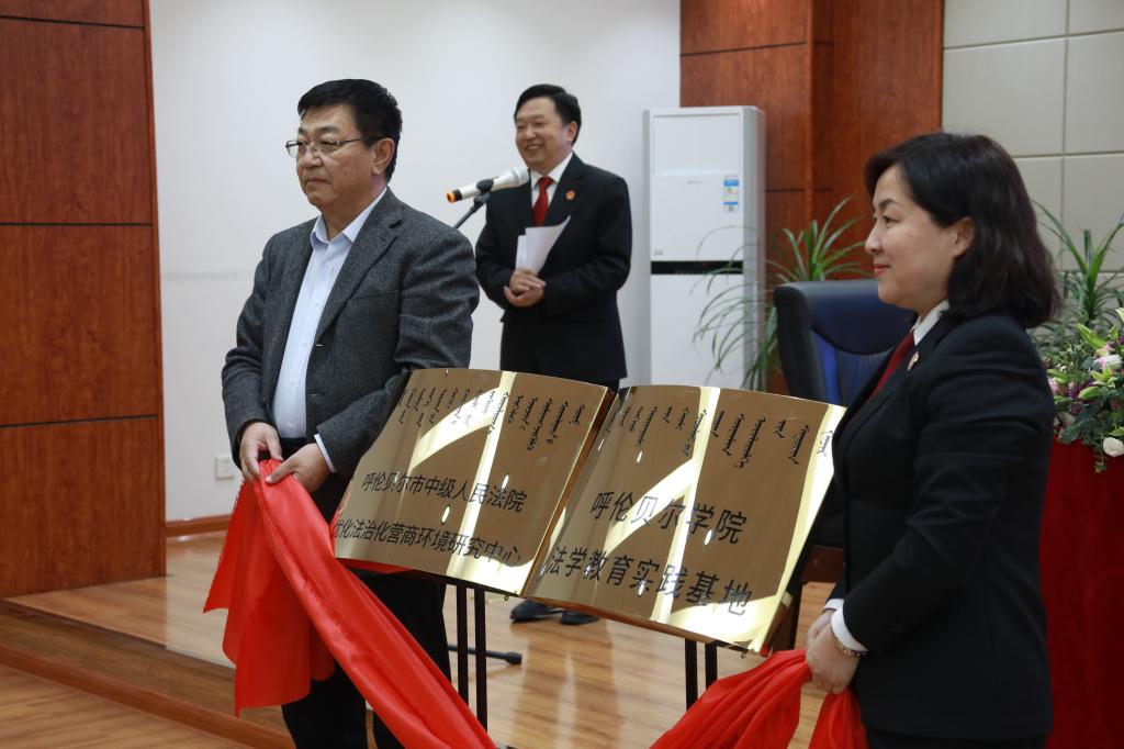 呼伦贝尔市中级人民法院与贝博举行“呼伦贝尔市中级人民法院优化法治化营商环境研究中心”和“艾佛森贝博ballbet官网法学教育实践基地”协议签字仪式暨揭牌仪式