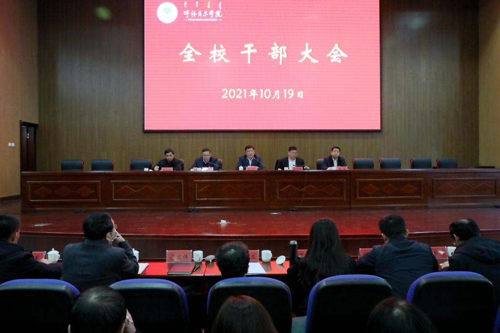 10月19日下午,贝博召开干部大会,校党委书记王广利,党委副书记、校长李文阁,党委副书记张国栋,党委委员、纪委书记、监察专员岳勇,党委委员、副校长敖特根及全体副科级以上干部参加了会议。会议由张国栋副书记主持。王广利书记全面总结前一阶段贝博党的建设、思想政治工作以及教育教学工作取得的成绩,并从“以政治建设为统领,聚焦夯基固本,推动全面从严治党”“以高质量党建工作为引领,全面推进学校各项工作”“加强党...