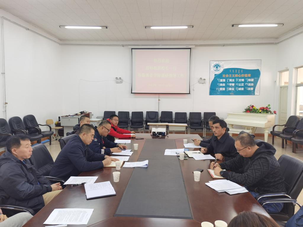 10月26日上午,校党委委员、副校长敖特根深入体育学院调研指导工作。科学技术处处长田振江,学科建设办公室副主任李洋陪同。体育学院领导班子及环节干部参加了调研座谈会。会上,敖特根副校长对本次到体育学院的调研目的和内容进行了说明,并强调了体育硕士申报工作的重要性。体育学院院长李晓峰以科研为契机对体育学院申硕及各方面工作进行了介绍。体育学院领导班子其他成员及各环节干部对学院申硕工作提出了自己的认识及努力...