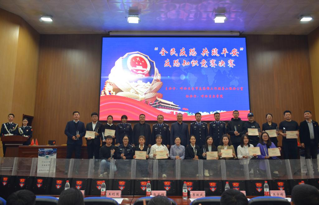 为深入贯彻落实习近平总书记关于反恐怖工作的系列重要指示精神,切实提升高校师生反恐防暴意识和防范化解风险隐患的能力,11月4日上午,由呼伦贝尔市反恐怖工作领导小组办公室主办、贝博联合承办的以“全民反恐,共筑平安”为主题的反恐知识竞赛在贝博图书馆四楼报告厅举办。贝博党委委员、副校长李跃武,呼伦贝尔市公安局反恐怖和特巡警支队副支队长郭若辉,海拉尔区公安局分局党委委员、政工办主任顾宝堂,呼伦贝尔市公安局反...