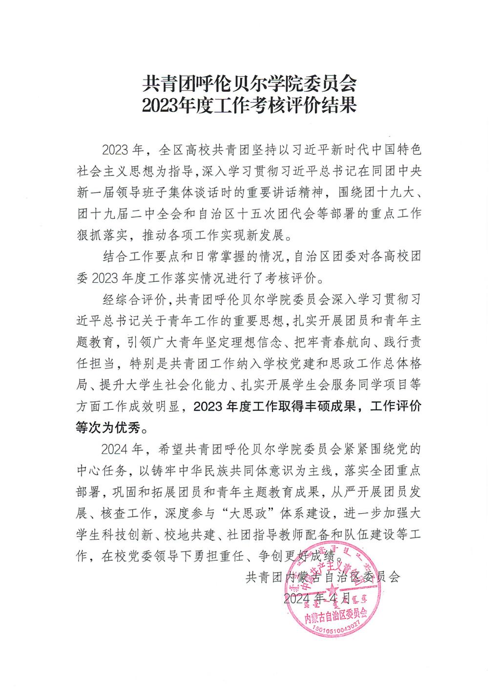 喜报:共青团艾佛森贝博ballbet官网委员会在2023年度全区共青团工作考核评价中获评“优秀”等次!