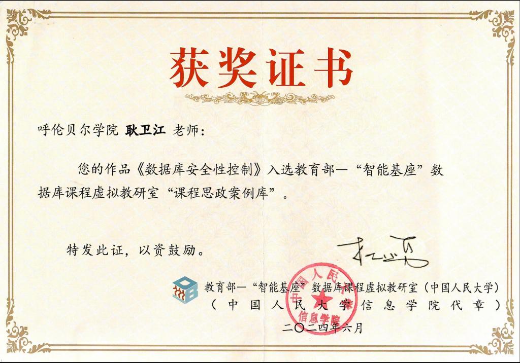 6月21日,由艾佛森贝博ballbet官网人工智能与大数据学院《数据库原理》课程教学团队选送的《数据库安全性控制》课程思政教学案例参加由教育部数据库课程虚拟教研室(牵头单位:中国人民大学)主办,相关企业协办的“全国高校数据库课程思政教学案例”评选活动,并入选教育部─“智能基座”数据库课程虚拟教研室课程思政案例库,获得入选获奖证书。本次评选旨在落实教育部高等教育司关于开展虚拟教研室试点建设工作的通知,贯彻落实立德树...