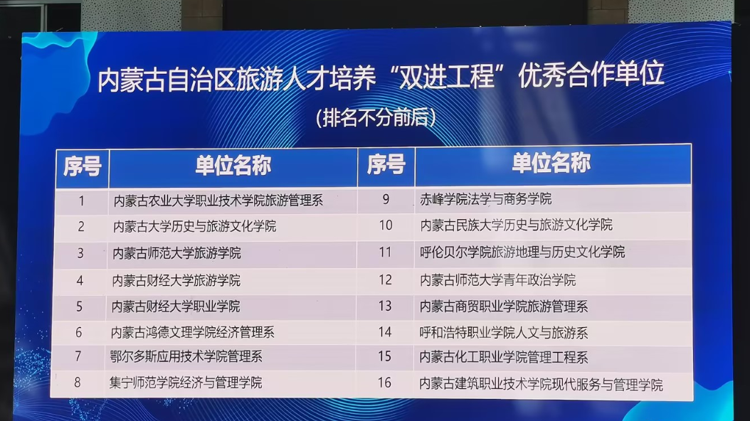 贝博旅游地理与历史文化学院获评内蒙古自治区旅游人才培养“双进工程”优秀合作单位