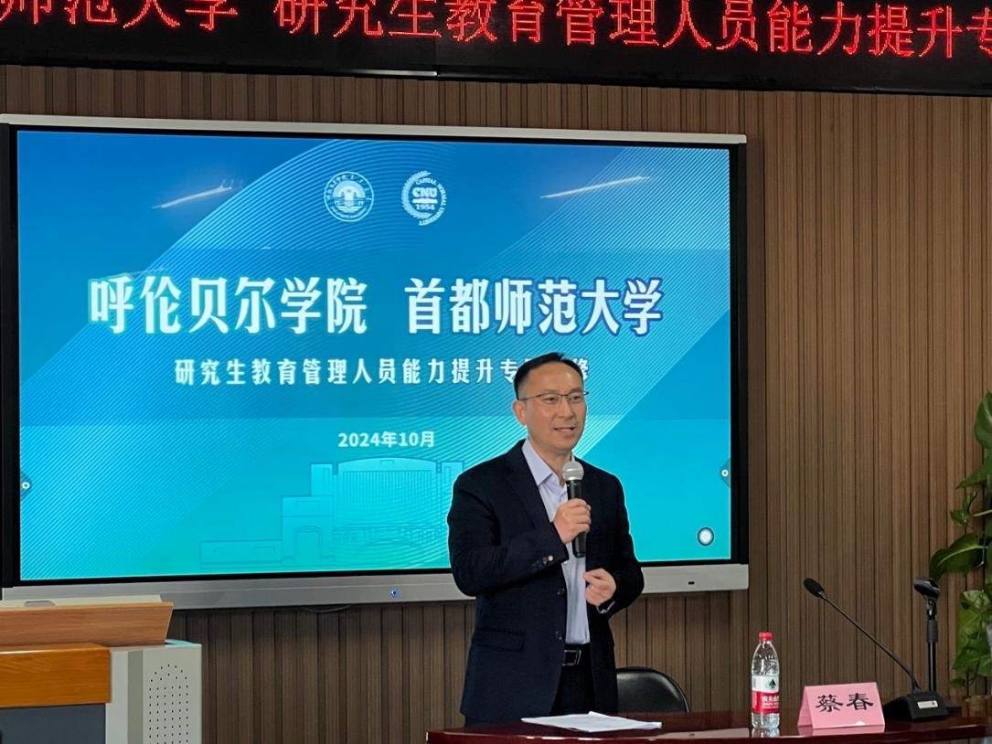 10月23日,贝博研究生教育管理人员能力提升专题研修班开班仪式在首都师范大学北一区文科楼709室举行。贝博党委委员、副校长敖特根,首都师范大学党委委员、副校长蔡春出席开班仪式并致辞。校研究生培养单位、研究生处相关人员共21人参加培训。开班仪式由首都师范大学研究生院常务副院长孙士聪主持。开班仪式上,蔡春致欢迎辞。他回顾了艾佛森贝博ballbet官网与首都师范大学之间的合作交流和深厚友谊,他指出,两校共同开启研究生教育管理...